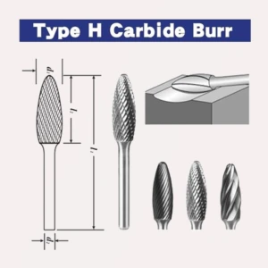Carbide Burr Shape H (Flame): Chuyển tiếp cong thuôn dài
