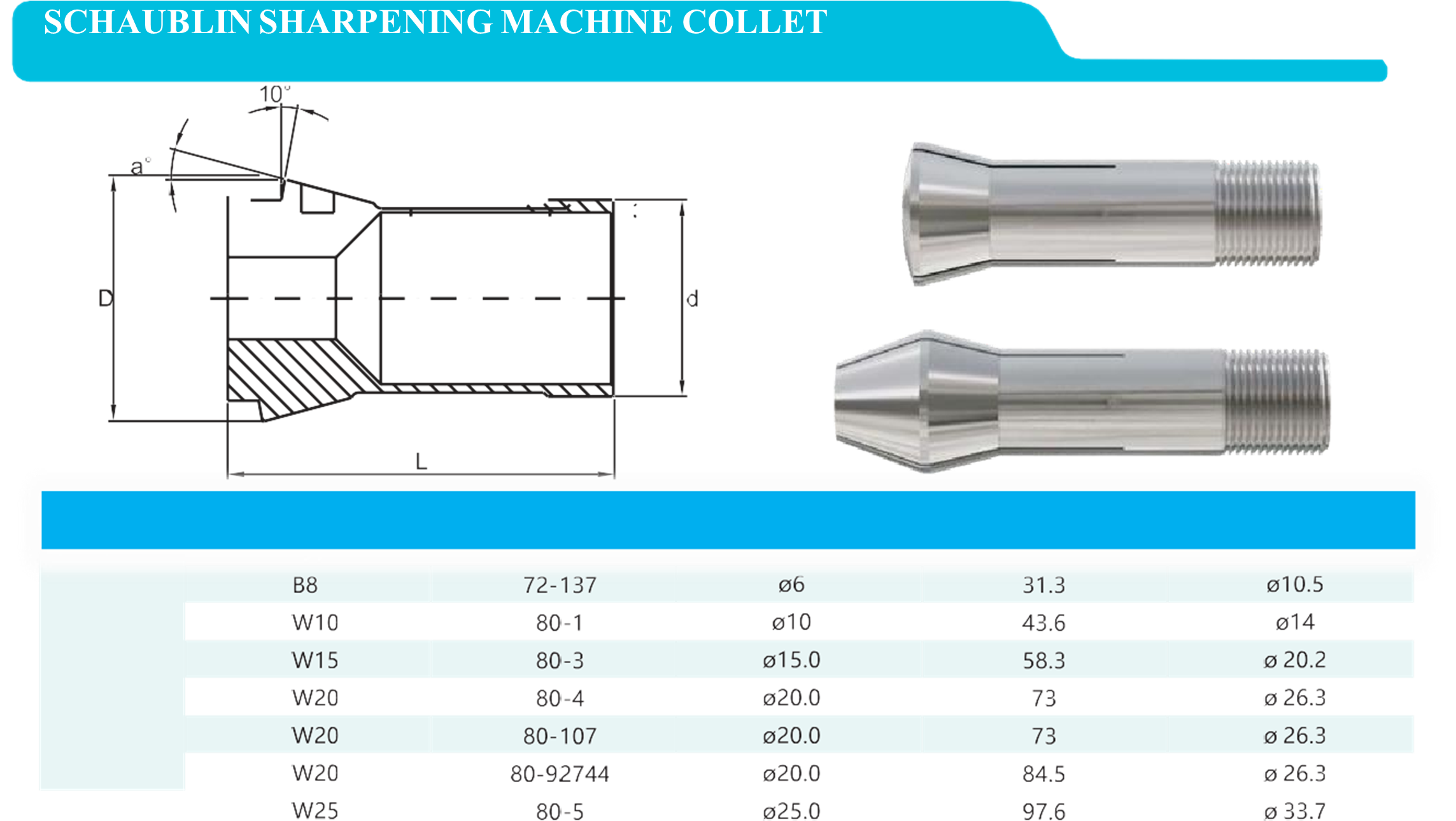 - Loại collet: B8 – Dải chiều dài: 72–137 mm