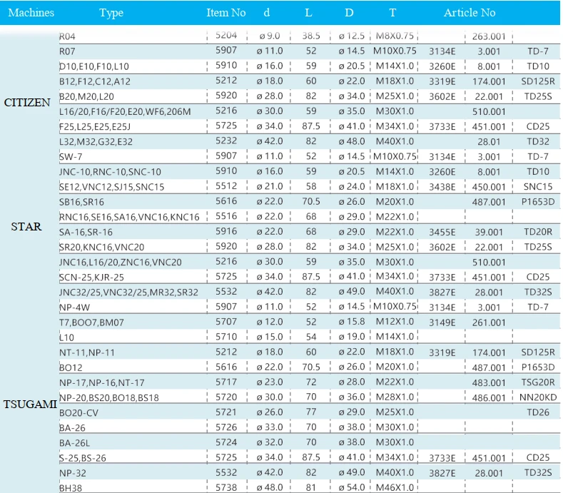 - Phù hợp nhiều dòng máy: Citizen, Star, Tsugami… (theo bảng mã và kích thước tương ứng).