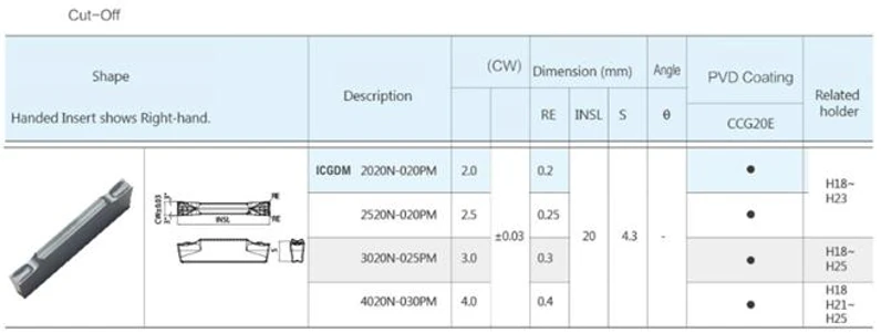 - Đa dạng kích thước insert, phù hợp nhiều loại rãnh và vật liệu.