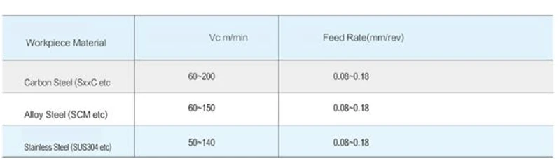 - Thép carbon (SxxC): Vc 100–200 m/phút, f 0.10–0.25 mm/vòng (CW 2.0–2.4 mm).