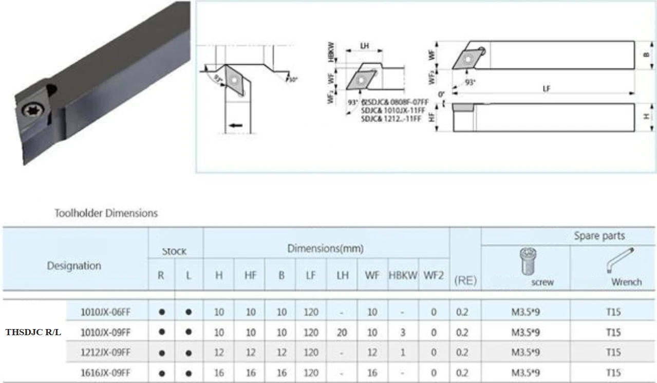 - Thiết kế chuẩn THSDJC R/L, dễ dàng đồng bộ với nhiều loại gá dao tiện ngoài khác.