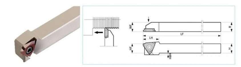 - Kết cấu kẹp insert ren tam giác, hướng gá R/L.