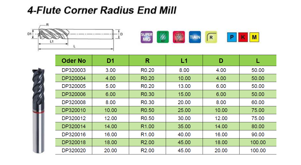 An Mi > Sản phẩm > DAO PHAY > Dao phay đầu đỉnh bo R