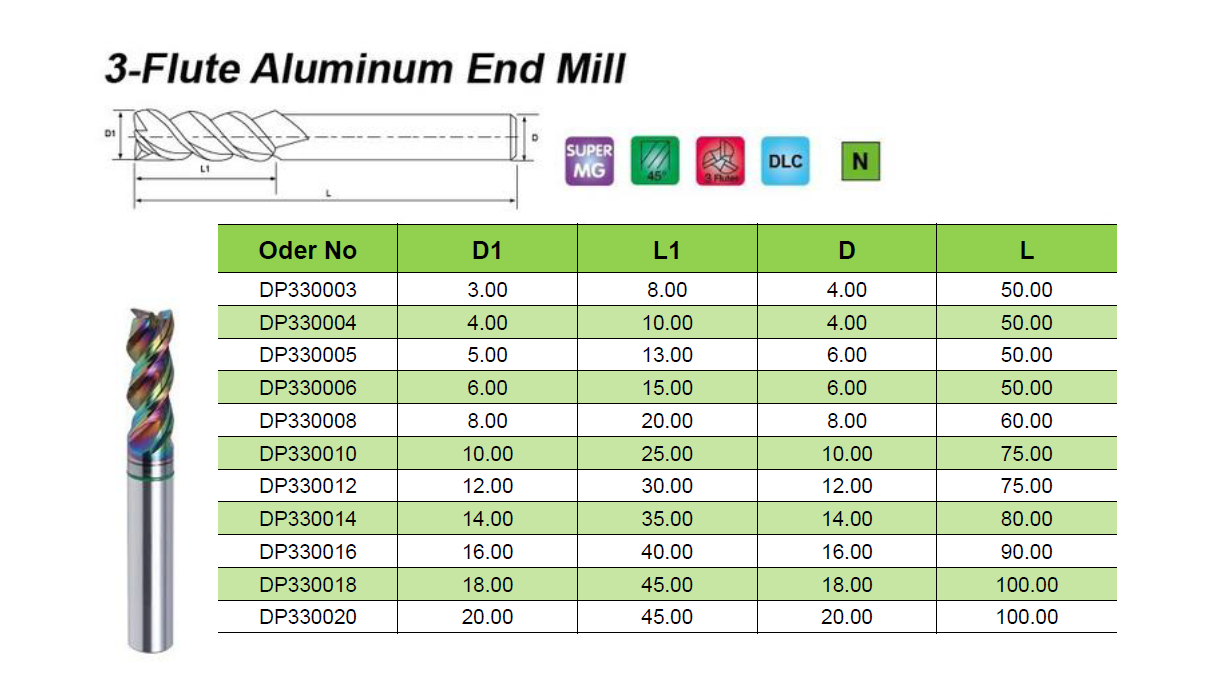Ứng dụng: gia công vật liệu kim loại màu(nhôm, đồng..)
