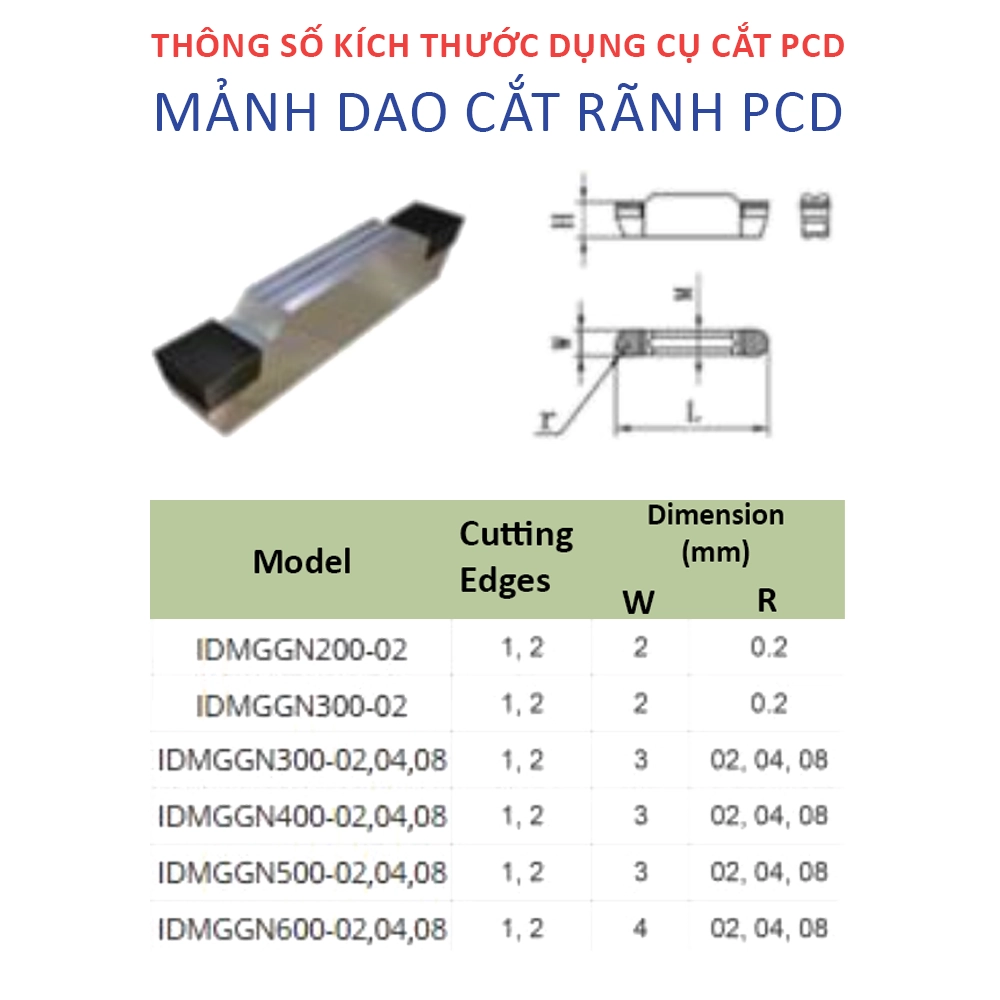 Thông Số Kỹ Thuật Mảnh Dao Cắt Rãnh PCD IDMGGN