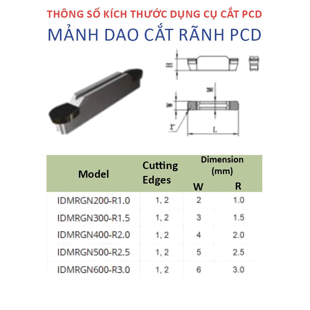 Thông Số Kỹ Thuật Mảnh Dao Cắt Rãnh PCD IDMRGN