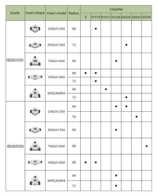 Mảnh dao CBN – Insert tiện CNC theo cấp độ IBOB3500 & IBOB9500