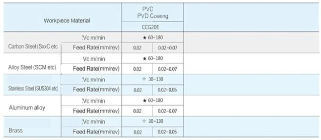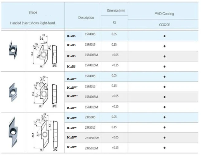 - Đa dạng mã insert cho nhiều yêu cầu gia công.