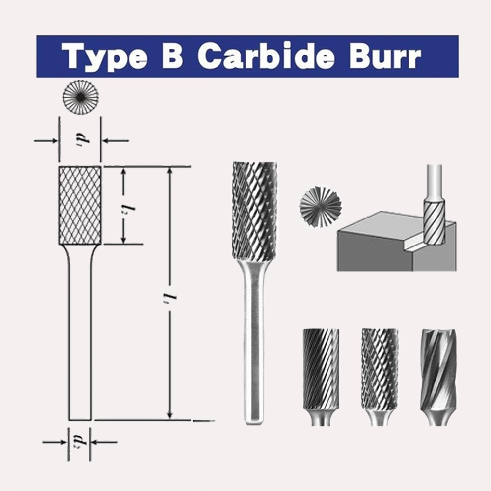 Carbide Burr Shape B (Cylinder End Rounded): Xử lý mép bo & chuyển tiếp phẳng?