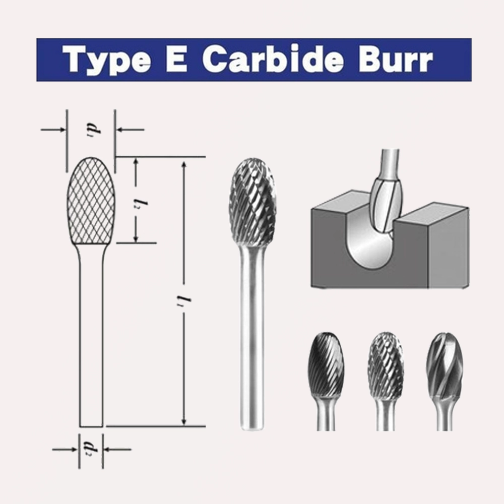 Carbide Burr Shape E (Oval): Làm mượt chuyển tiếp & mép bo nhẹ?