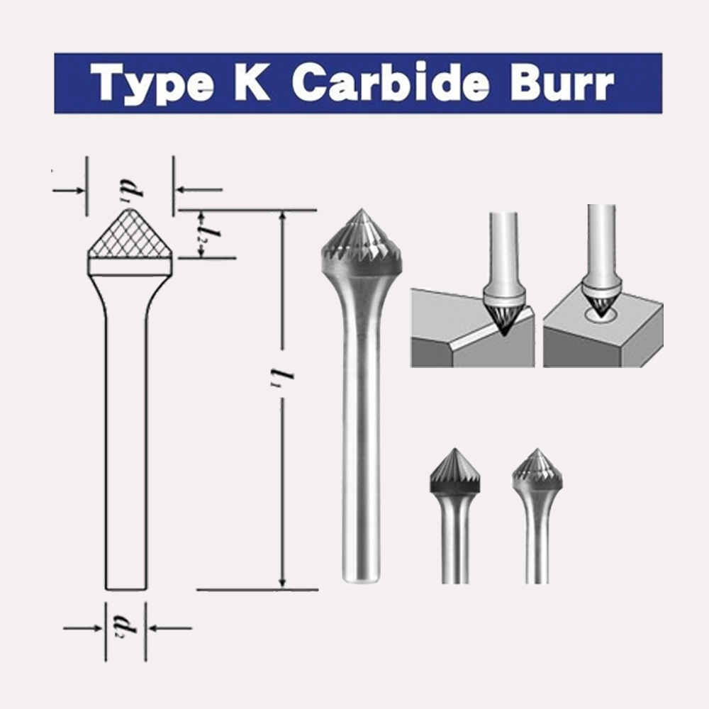 Carbide Burr Shape K (Taper Pointed End): Vát sắc & sửa góc