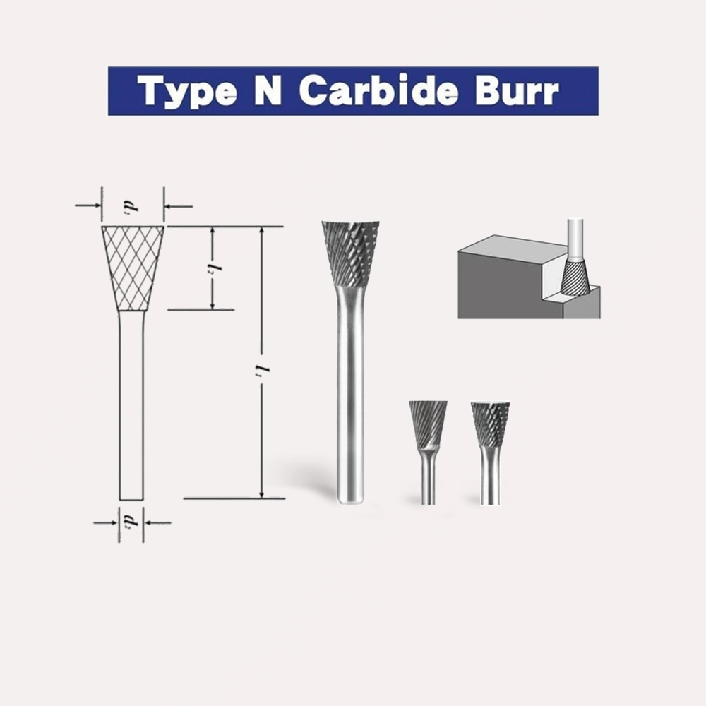 Carbide Burr Shape N (Inverted Cone): Xử lý mép trong & undercut