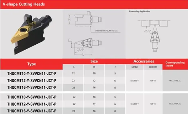 Dao phay V-shape Cutting Heads THQCMT10-Y-SVVCN11-JCT-P được thiết kế chuyên dụng cho các ứng dụng gia công biên dạng chữ V.