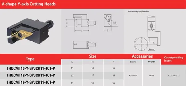 Dao phay V-shape Y-axis Cutting Heads THQCMT10-Y-SVJCR11-JCT-P được tối ưu cho các ứng dụng gia công biên dạng chữ V trên máy CNC.
